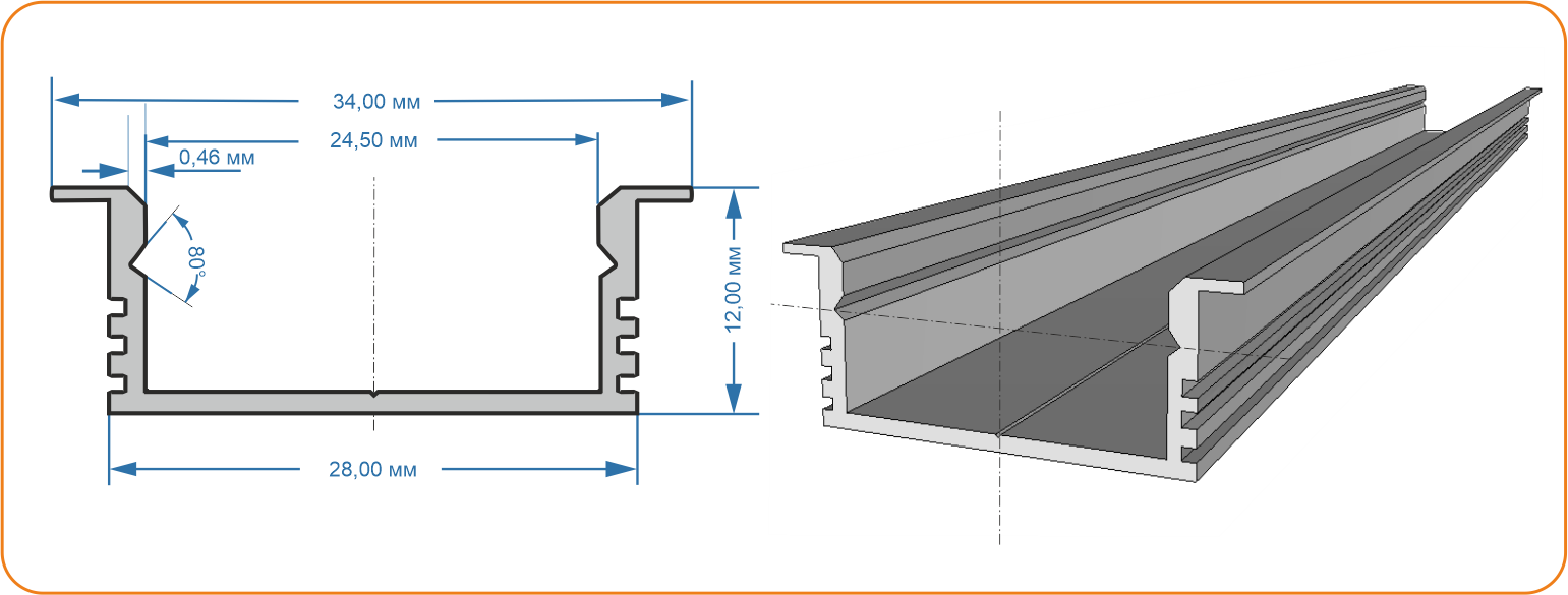 Профиль подходит для всех типов лент шириной до 30 мм. Отдельно приобретаются заглушки. Стоимость указана за метр погонный с экраном без НДС. Возможна окраска в цвет по RAL.