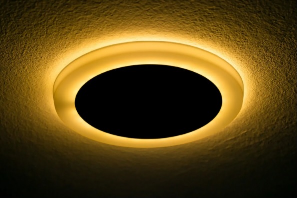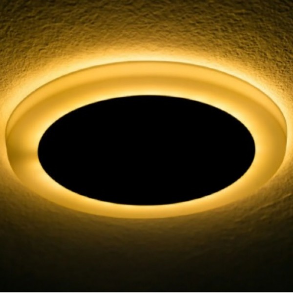Второй режим - декоративная подсветка, обеспечивается цветным контуром светильника. Позволяет внести новые яркие краски в помещение и сделать интерьер незабываемым.